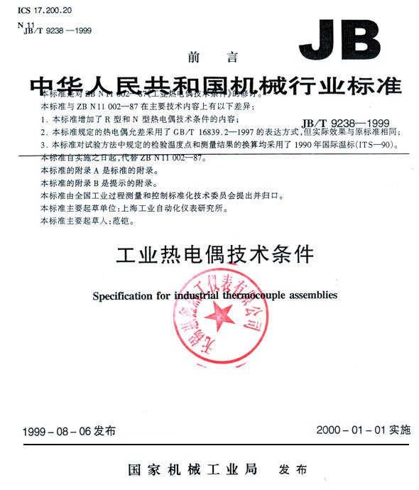 B分度號 鉑銠30-鉑銠6熱電偶標準